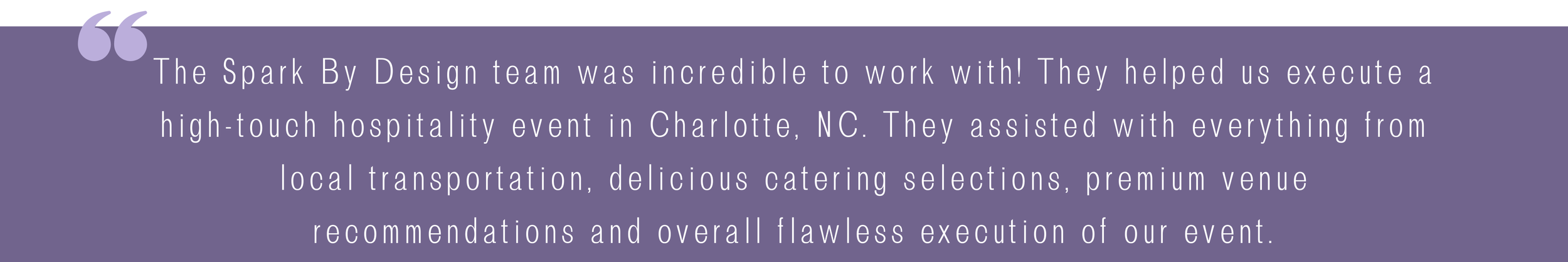 Based out of Charlotte, we provide DMC (Destination Management) services for all of North Carolina and upstate South Carolina, and will travel further upon request. Our agile team manages complex design and logistical responsibilities so you can spend your valuable time on other tasks.